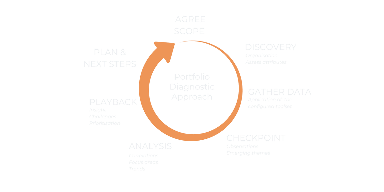 As part of the process, we'll look to identify features to support effective governance and agile ways of working. It's possible to configure the organisations own 'Portfolio Diagnostic Toolset' to support the ongoing management of the Strategic Portfolio and Strategic Planning Processes.